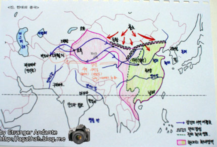 * 참고 : 상왕조 이후 주나라의 황제는 왕위를 두고, 왕자들의 다툼이 극심했다. 이에 황제는 각 왕자들을 지방으로 보내 특출나게 잘 다스리는 왕자에게 왕위를 계승할 뜻을 전했다. 이를 혈연적 봉건제도라 한다. (봉건제=지방분권적, 봉건제의 반대=강력한 왕 중심의 중앙집권적) 그러나 이와 같은 혈연적 봉건제는 지방의 힘을 극대화 시켰고, 이로 인해 중국은 지방의 세력간의 다툼이 치열한 '춘추전국시대'를 맞이하게 된다. 이는 중국의 철기문화로 더욱 가속화되었고, 이와 같은 혼란기를 해결하고자 많은 사상가들이 등장했다.(사상가=제자백가=유교:공자,맹자 / 도가:노자,장자 / 사랑강조:묵가 / 한비자:법가) : 매우 중요한 부분입니다. (반드시 시험에 나오는 세계사 내용입니다.)