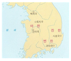 전라도와 충청도 지역의 마한 연맹체, 경상북도 지역의 나라들은 진한 연맹체, 경상남도 지역의 나라들은 변한 연맹체를 만들었다.