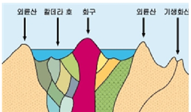 * 외륜산 : 화산 가운데 분화구와 칼데라를 둘러싸고 있는 산으로 화산의 분출물로 만들어졌어요.