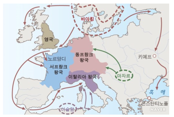 100여 년에 걸친 이들의 침략이 수습된 10세기 중반, 서유럽의 지도는 크게 달라져 있었다.