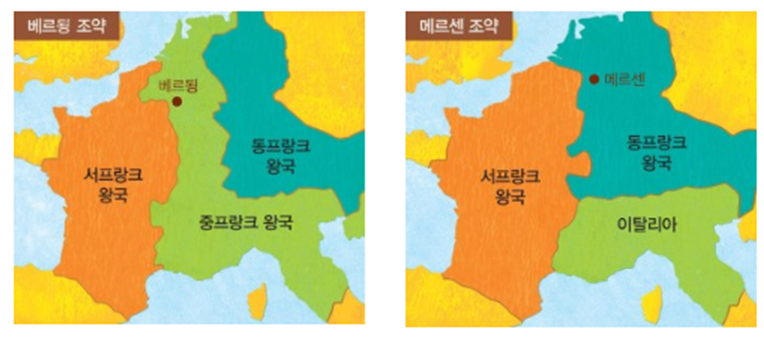 2. 프랑크 왕국의 분열(매우 중요:베르됭,메르센조약)